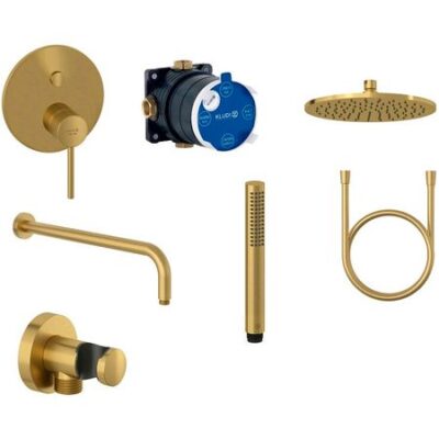 Душевая система Kludi Bozz 38736N076. Характеристики: Цвет: золото брашированное. Материал: латунь. Металлический рычаг. Управление: однорычажное.