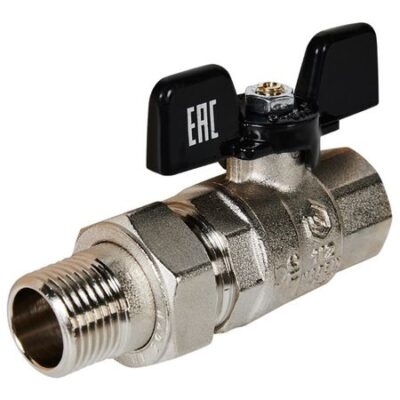 С полусгоном Резьба: 1/2″ Тип резьбы: ВР-НР Ручка: бабочка Материал: латунь STOUT