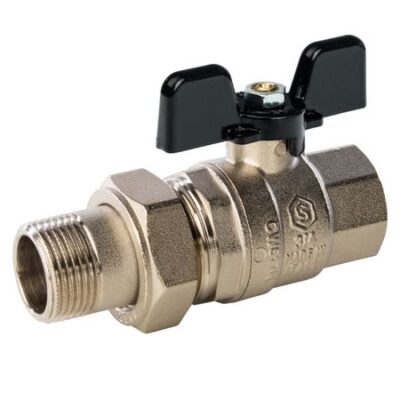 С полусгоном Резьба: 3/4″ Тип резьбы: ВР-НР Ручка: бабочка Материал: латунь STOUT