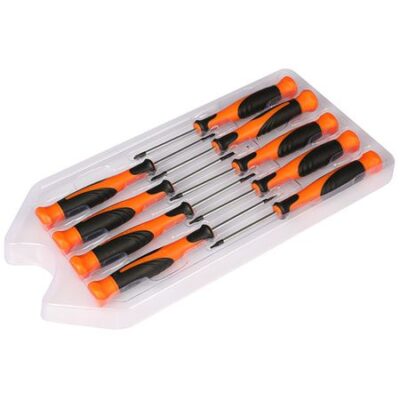 Количество предметов: 9 шт Состав набора: отвертки прецизионные с прорезями: 1,5, 2,0, 2,5×50 мм, PH: PH000, PH00, PH0x50 мм, Torx: T5, T6, T7x50