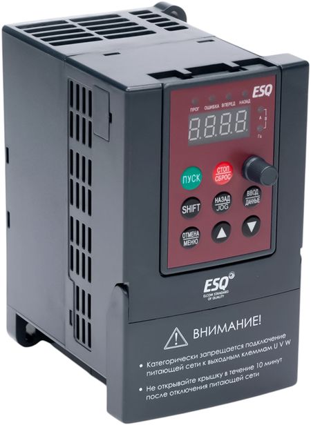 Серия ESQ-A200 инверторов частоты от китайского бренда — это надежные и технологичные устройства для точного управления силовыми агрегатами. В модельном ряду представлены устройства для различных обслуживаемых мощностей, что упрощает подбор под готовую систему. Применяется в совокупности с однофазными маломощными моторами.