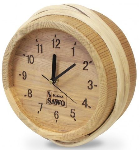 Финская компания SAWO представляет широкий ассортимент механических часов, которые могут быть изготавливаются из из натуральной древесины — сосны, кедра или осины. Часы могут иметь различную форму и цветовое оформление. Оборудование предназначено для установки вне парильного отделения.