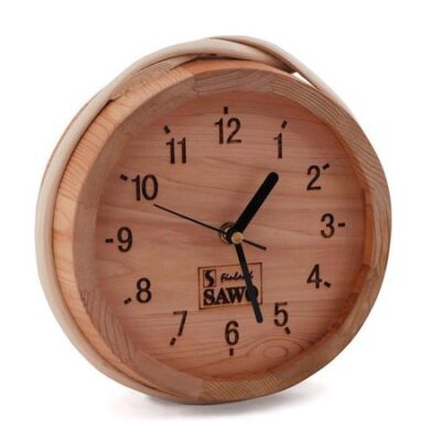 Финская компания SAWO представляет широкий ассортимент механических часов, которые могут быть изготавливаются из из натуральной древесины — сосны, кедра или осины. Часы могут иметь различную форму и цветовое оформление. Оборудование предназначено для установки вне парильного отделения.