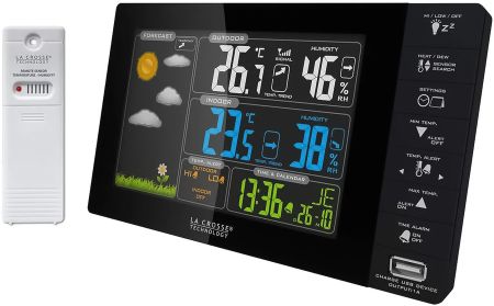 Модель погодной станции La Crosse (Ла Кросс) WS6827 будет в режиме реального времени 24/7 информировать пользователя о текущей погоде на улице и о состоянии воздуха в помещении, отмечая точки экстремумов влажности и температуры воздуха и отображая тенденцию изменения этих показателей во времени, а также формировать и выводить на дисплей прогноз погоды на ближайшие 12 часов.