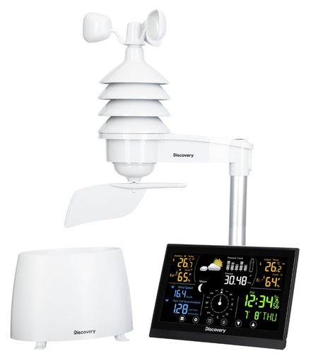 Профессиональная многоцелевая метеостанция Levenhuk (Левенгук) Discovery Report WA60 с возможностью измерять температуру, влажность, скорость ветра, количество осадков и давление. Помимо измерений в режиме реального времени, устройство запоминает пиковые значения и сигнализирует о приближении к ним.