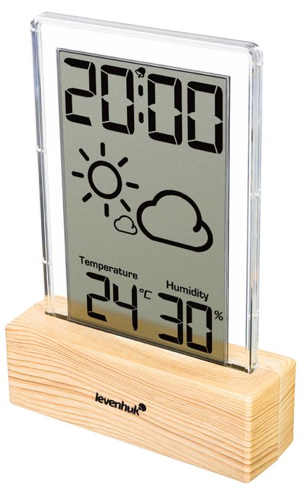 Levenhuk (Левенгук) Wezzer BASE L60 — термогигрометр с функциями будильника и прогноза погоды. Портативное устройство легко переместить и взять с собой в путешествие. Экран выводит прогнозируемую погоду с помощью нескольких иконок. Интересная стилизация под дерева придется по вкусу любителям нестандартного дизайна.