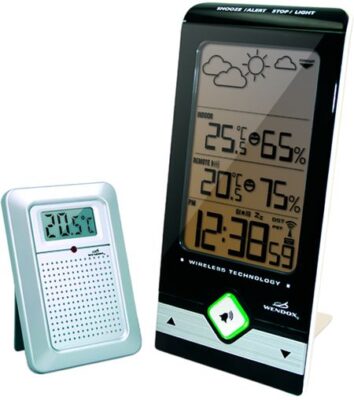 Цифровая метеостанция в стильном дизайне с индикатором уровня комфортности и прогнозом погоды домашняя модель погодной станции W9731+6726 от Wendox имеет выносной радиодатчик для измерения наружной температуры и влажности воздуха. Помимо символьного прогноза погоды и других стандартных значений у данной модели присутствует индикатор уровня комфортности, который производитель визуализировал в виде смайликов.
