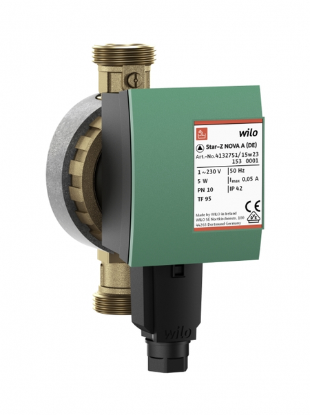 Циркуляционные насосы Wilo (Вило) Star-Z NOVA прекрасно подойдут для современных систем питьевого водоснабжения. Двигатель насоса надежно защищен от токов блокировки. Монтаж крайне прост. Установка производится вертикально. Корпус насоса выполнен из латуни. Двигатель работает бесшумно. Насос оснащен ротором мокрого типа. Напор данной модели составляет 0,86 м.