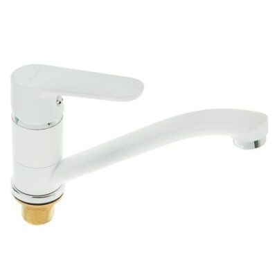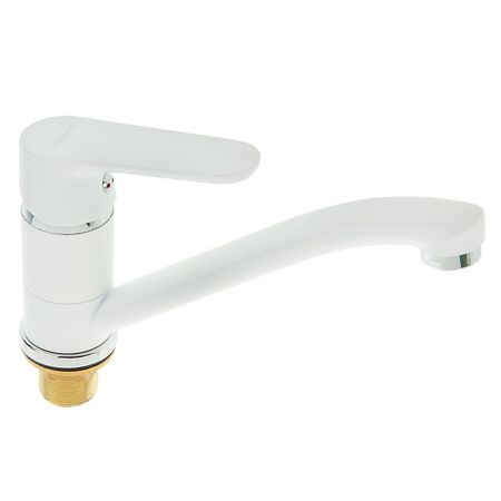 Cмеситель для кухни Accoona A4266G, однорычажный, средний излив, с гайкой, силумин, белый