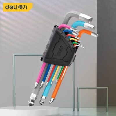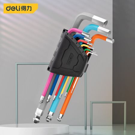 Цветной удлиненный шестигранный ключ Deli с шаровой головкой. Шестигранная отвертка с плоской головкой. Набор из 9 предметов. Набор шестигранников с радужной шаровой головкой 1,5–10 мм. DL232509