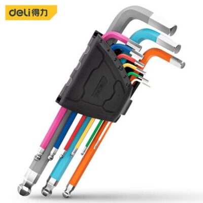 Цветной удлиненный шестигранный ключ Deli с шаровой головкой. Шестигранная отвертка с плоской головкой. Набор из 9 предметов. Набор шестигранников с радужной шаровой головкой 1,5–10 мм. DL232509