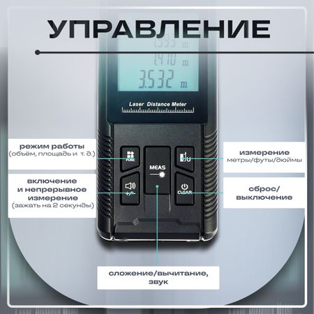 Дальномер лазерный ТУНДРА, дальность 100 м. <em> Точный контроль на больших расстояниях!</em> <strong> Лазерное измерительное устройство ТУНДРА</strong> — удобный инструмент для проведения точных измерений расстояний на дальности до 100 м. Этот прибор станет отличным помощником в любых строительных или ремонтных проектах, обеспечивая надежные результаты благодаря современным технологиям. <ul> <li> <strong> Лазерная точность:</strong> Измеряйте расстояния с исключительной точностью. Лазерное наведение помогает уверенно замерять большие расстояния, исключая ошибки визуального расчета.</li> <li> <strong> Удобство использования:</strong> Компактный дизайн и простой интерфейс позволяют легко управлять устройством одной рукой. Интуитивно понятное управление гарантирует быстрый доступ ко всем функциям, экономя ваше время.</li> <li> <strong> Энергоэффективность:</strong> Устройство оптимизировано для длительной работы без необходимости частой замены батареек. Это значит больше времени на работу и меньше на заботы о подзарядке.</li> <li> <strong> Продуманный дизайн:</strong> Корпус устройства выполнен из прочных материалов, что делает его устойчивым к воздействиям внешней среды. Лазерный дальномер прекрасно подходит для профессионалов и энтузиастов.</li> </ul> <strong> Широкие возможности применения:</strong> Лазерное измерительное устройство ТУНДРА идеально подходит как для профессиональной, так и для любительской деятельности. Будь то строительство, отделочные работы или простая перепланировка, этот прибор обеспечит необходимые точность и надежность. Откройте для себя удобство и уверенность в работе с новым измерительным помощником, и ваши проекты никогда не будут прежними!