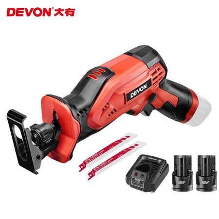 Dayou 12 В литиевая электрическая ручная пила, маленькая ручная электрическая пила, сабельная пила, 2,0 Ач, двойной аккумулятор, быстрая зарядка с 2 пильными полотнами 5828 Devon