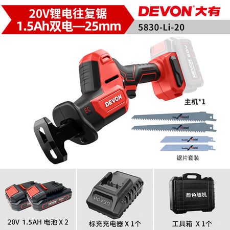 Dayou 20 В литиевая батарея, бесщеточная сабельная пила 5830, ручная сабельная пила, многофункциональная деревообрабатывающая пила, двойной аккумулятор 1,5 Ач Devon