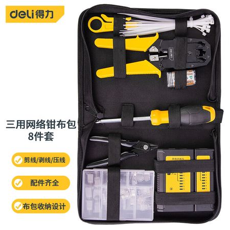 Deli 4P/6P/8P трехразовый сетевой зажим, тестер линий, плоскогубцы для сетевого кабеля, плоскогубцы для зачистки, набор тканевых сумок из 8 предметов DL380008