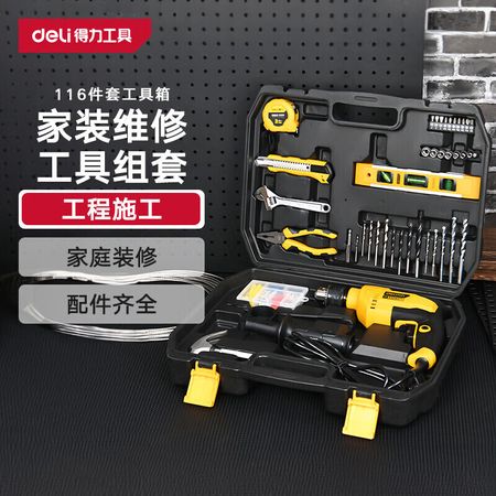 Deli 600 Вт ударная дрель, набор для ремонта ручной дрели, 116 предметов, бытовой многофункциональный ящик для инструментов, набор электроинструментов CJ