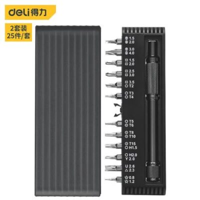 Deli Deli 2 комплекта многофункциональных точных ремонтных отверток, 25 шт./компл., маленькая черная коробочка DL240025B