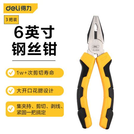 Deli Deli 3-х предметные плоскогубцы с резиновыми ручками, тиски, плоскогубцы, кусачки, 6 дюймов, DL2006