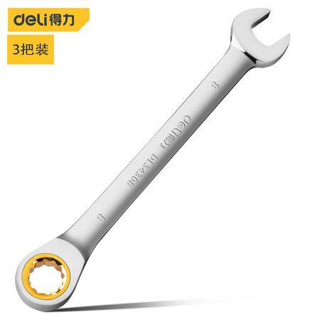 Deli Deli Набор из 3 ключей с трещоткой на 90 зубьев, двойной ключ с трещоткой, открытый быстродействующий ключ для цветов сливы, 8 мм DL34308