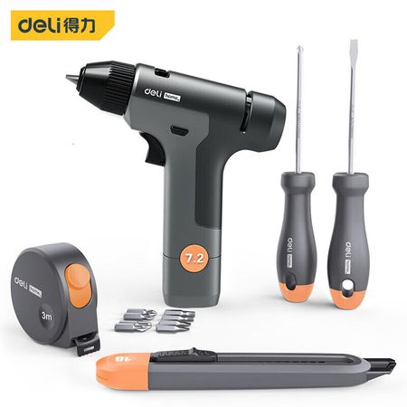 Deli Deli, немецкая домашняя серия, набор электроинструментов, литиевая электрическая дрель 7,2 В, набор из 6 предметов HT0206C, цветной оранжевый