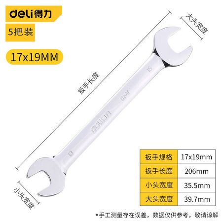 Deli Deli Зеркальный двусторонний ключ на 5 предметов Двусторонний ключ Ключ двойного назначения 17×19 мм DL33317