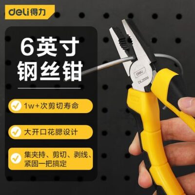 Deli DL2006 двухцветные плоскогубцы с пластиковой ручкой, тиски 6 дюймов, острая резка, прочные и долговечные