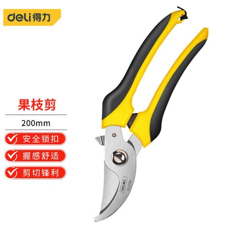 Deli DL2789 секаторы для фруктовых веток из нержавеющей стали, садовые секаторы с изогнутым ртом, бытовые ножницы для обрезки 8 дюймов, желтый