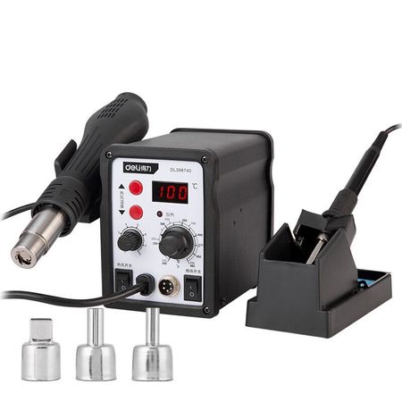 Deli DL398740 Паяльная станция «два в одном» с регулируемой температурой, регулируемой температурой и цифровым дисплеем, паяльная станция, электрический паяльник, набор термофенов, 740 Вт