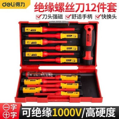 Deli DL510012 Изолированная отвертка с быстросменной головкой, резиновая пластиковая ручка, набор изолированных отверток, набор из 12 изолированных отверток