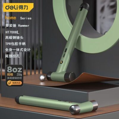 Deli HT7008L домашняя серия молоток с круглой головкой и резиновой ручкой монтажный молоток из высокоуглеродистой стали, 8 унций, зеленый