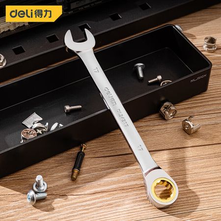Deli Ключ двойного назначения с трещоткой на 90 зубьев, открытый быстродействующий ключ для цветов сливы, 17 мм, DL34317