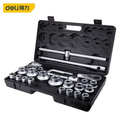 Deli Набор головок из 26 предметов для защиты автомобиля. Серия 19 мм. Метрический набор. Набор для защиты автомобиля. Набор хромированных гильз, обработанных пескоструйной обработкой. Прочная гильза DL1026B.