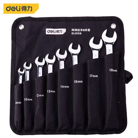 Deli Набор ключей двойного назначения из 8 предметов. Двусторонний ключ на 8–19 мм. Открывающаяся пластина для цветка сливы DL0108.