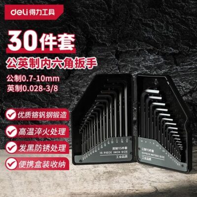 Deli Набор метрических и дюймовых удлиненных шестигранных ключей, отвертка, набор шестигранных ключей, набор из 30 предметов 230030