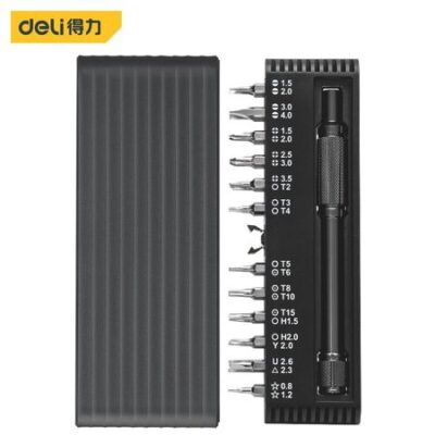 Deli небольшой черный ящик, набор отверток из 25 штук, набор из 25 штук, крестообразная пятиконечная шестиугольная Y-образная U-образная треугольная отвертка DL240025B по индивидуальному заказу