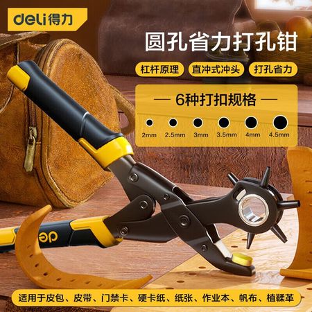 Deli сверхмощные трудосберегающие плоскогубцы для перфорации ремней, перфоратор для изделий из кожи, 6 круглых отверстий, трудосберегающие 9-дюймовые DL1919A