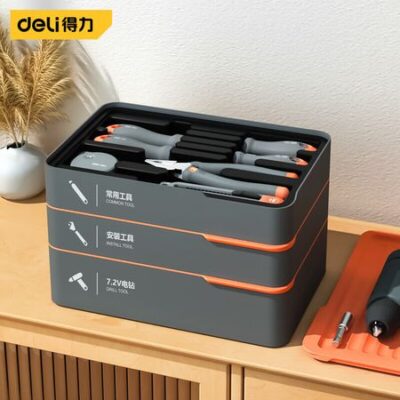 Deli T-BOX бытовой штабелируемый набор, многофункциональный ящик для инструментов для ремонта, электрическая дрель, набор электрика H1001-DEF