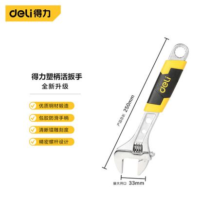 Deli высококачественный разводной ключ с пластиковой ручкой, разводной ключ с открытым зевом, 10 дюймов DL30110