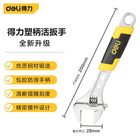 Deli высококачественный разводной ключ с пластиковой ручкой, разводной ключ с открытым зевом, 8 дюймов, DL30108