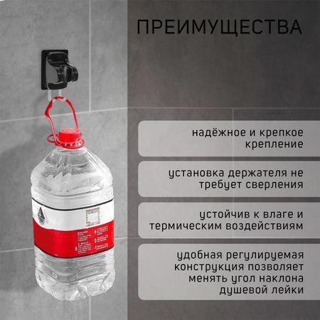 Держатель для душевой лейки ZEIN Z122, самоклеющейся, регулируемый, с крючком, черный. Держатель для душевой лейки ZEIN Z122 – это функциональный и стильный аксессуар, выполненный в элегантном черном цвете. Оснащен держатель самоклеящейся основой, что позволяет легко установить его без необходимости сверления стен. Дополнительный крючок делает его еще более удобным, обеспечивая место для подвешивания насадки или других аксессуаров. Регулируемый механизм позволяет изменять угол наклона душевой лейки для комфортного использования. Этот держатель отлично впишется в любой интерьер ванной комнаты, сочетая в себе практичность и современный дизайн. <b> Характеристики:</b> <ul> <li> Длина клейкой части: 9,3 см.</li> <li> Ширина клейкой части: 6,7 см.</li> <li> Высота держателя: 12 см.</li> <li> Ширина держателя: 5,5 см.</li> <li> Глубина держателя: 5,5 см.</li> </ul>