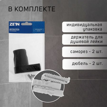 Держатель для душевой лейки ZEIN Z91, регулируемый, пластик, черный. Держатель для душевой лейки ZEIN Z91 — это функциональный и стильный аксессуар для вашей ванной комнаты. Изготовленный из прочного пластика, держатель обладает высокой устойчивостью к повреждениям и воздействию влаги. Черный цвет придает держателю современный и лаконичный вид, что позволяет ему гармонично вписаться в различные стили интерьера. Регулируемый механизм позволяет легко настраивать угол наклона душевой лейки, создавая комфортные условия для принятия душа.
