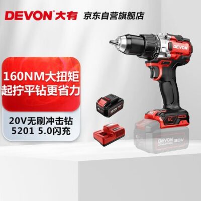 Devon Бесщеточная ударная дрель Devon с литий-ионным аккумулятором, жесткая отвертка промышленного класса, электрическая дрель 5201, 5.0, одиночная электрическая вспышка