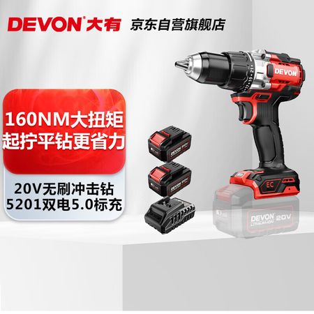 Devon Литиевая аккумуляторная батарея Devon, бесщеточная ударная дрель, жесткая отвертка промышленного класса, электрическая дрель 5201, стандартное двойное электрическое зарядное устройство 5.0