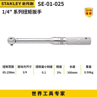 Динамометрический ключ Stanley SE-01-025, 5-25 Н.м72 зубьев, прецизионный храповой ключ, ручной ключ с фиксированной храповой головкой