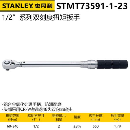 Динамометрический ключ Stanley серии 1/2 дюйма с двойной шкалой, динамометрический ключ с храповым механизмом, быстрый ключ STMT73591-23