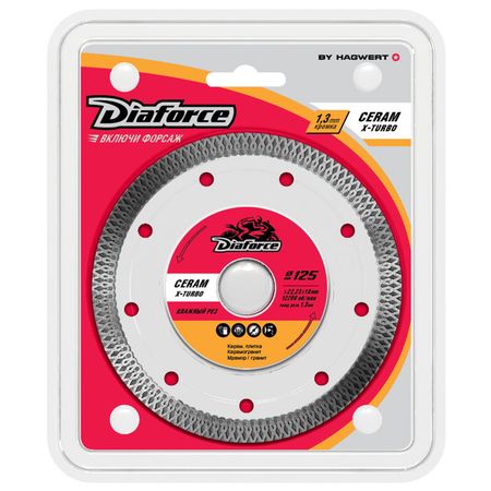 Главная » Строительство и ремонт диск алмазный DIAFORCE Ceram X-Turbo 125х22,23х1,3мм турбированный Просмотров 10 Назначение: универсальный Диаметр диска: 125 мм Посадочный диаметр: 22,2 мм Толщина реза: 1,3 мм Тип диска: сплошной, X-Turbo DIAFORCE