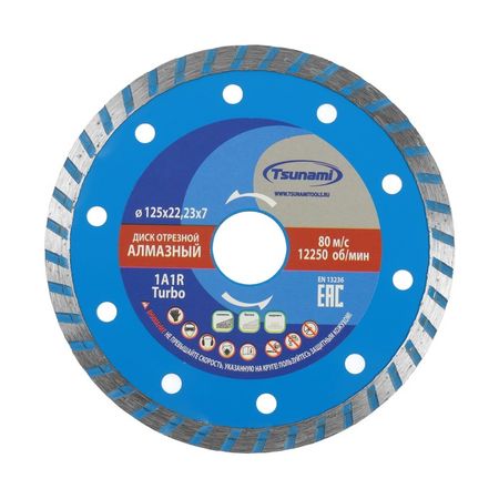 Выполняйте точные и быстрые резы по бетону! Алмазный отрезной диск TSUNAMI Turbo, 125 мм – это инструмент, который обеспечивает высокую производительность и долговечность при работе с бетоном. Диаметр 125 мм: Оптимальный размер для выполнения различных резов, обеспечивающий удобство и точность. Турбо-дизайн: Обеспечивает высокую скорость реза и эффективность, что особенно важно для профессиональных задач. Сухой рез: Подходит для работы без использования воды, что упрощает процесс и делает его более удобным. Посадочный диаметр 22 мм: Обеспечивает совместимость с большинством стандартных инструментов.Эффективность в работе: Алмазный отрезной диск TSUNAMI Turbo идеально подходит для работы с бетоном, обеспечивая высокую производительность и долговечность. Это незаменимый инструмент для профессионалов, которые ценят качество и надежность.