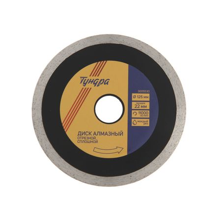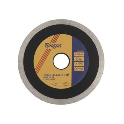 Диск алмазный отрезной ТУНДРА ПРОФИ, для реза плитки, сплошной, мокрый рез, 125×1.4×22 мм. Диск алмазный отрезной сплошной ТУНДРА предназначен для ручных резчиков и плиткорезных станков. Диск применяется для мокрого реза таких материалов, как: керамическая плитка, стекло, камнь, мрамор и других твердых строительных материалов. Инструмент имеет сплошную структуру, благодаря которой диск обеспечивает качественные и точные резы без сколов. Алмазное напыление служит для четкой, аккуратной и тонкой резки, не оставляя дефектов от перегрева.