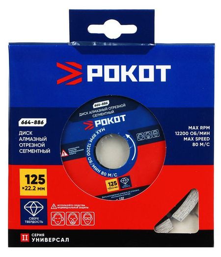 Отрезной алмазный диск РОКОТ сегментный 125х22,2 мм предназначен для сухой и мокрой резки армированного бетона, кирпича и керамики. Используется в качестве насадки для угловой шлифовальной машинки с максимальным числом оборотов в 12200 об/мин при максимальной скорости 80 м/с. Также совместим с ручным электрическим плиткорезом и штроборезом. Алмазные сегменты отличаются сверхтвердостью, обеспечивая четкий и ровный рез. Корпус из 65 стали обладает высокой прочностью и износостойкостью. Имеет посадочное отверстие с переходным кольцом диметром 22/20 мм. Процесс резки сопровождается воздушным охлаждением.