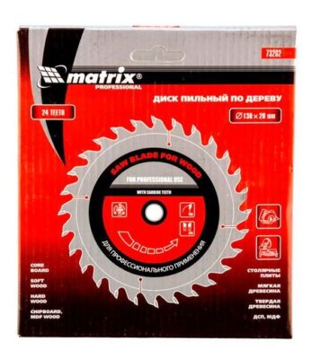 Пильный диск по дереву Matrix ф130 х 20 мм 73202 с 24 зубьями и переходным кольцом 20/16 применяется в качестве оснастки на циркулярных и торцовочных пилах с соответствующим внутренним и внешним диаметром. Он используется для продольного/поперечного реза материалов из мягкой и твердой древесины, ДСП, ДВП, фанеры, столярных плит. В комплект входит переходное кольцо 20/16 для возможности самостоятельного изменения посадочного диаметра при необходимости.
